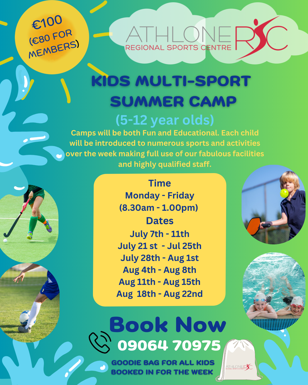 Places are limited, so book now by calling 090 647 0975. Let your child enjoy a summer full of fun, fitness, and friendship at Athlone RSC!